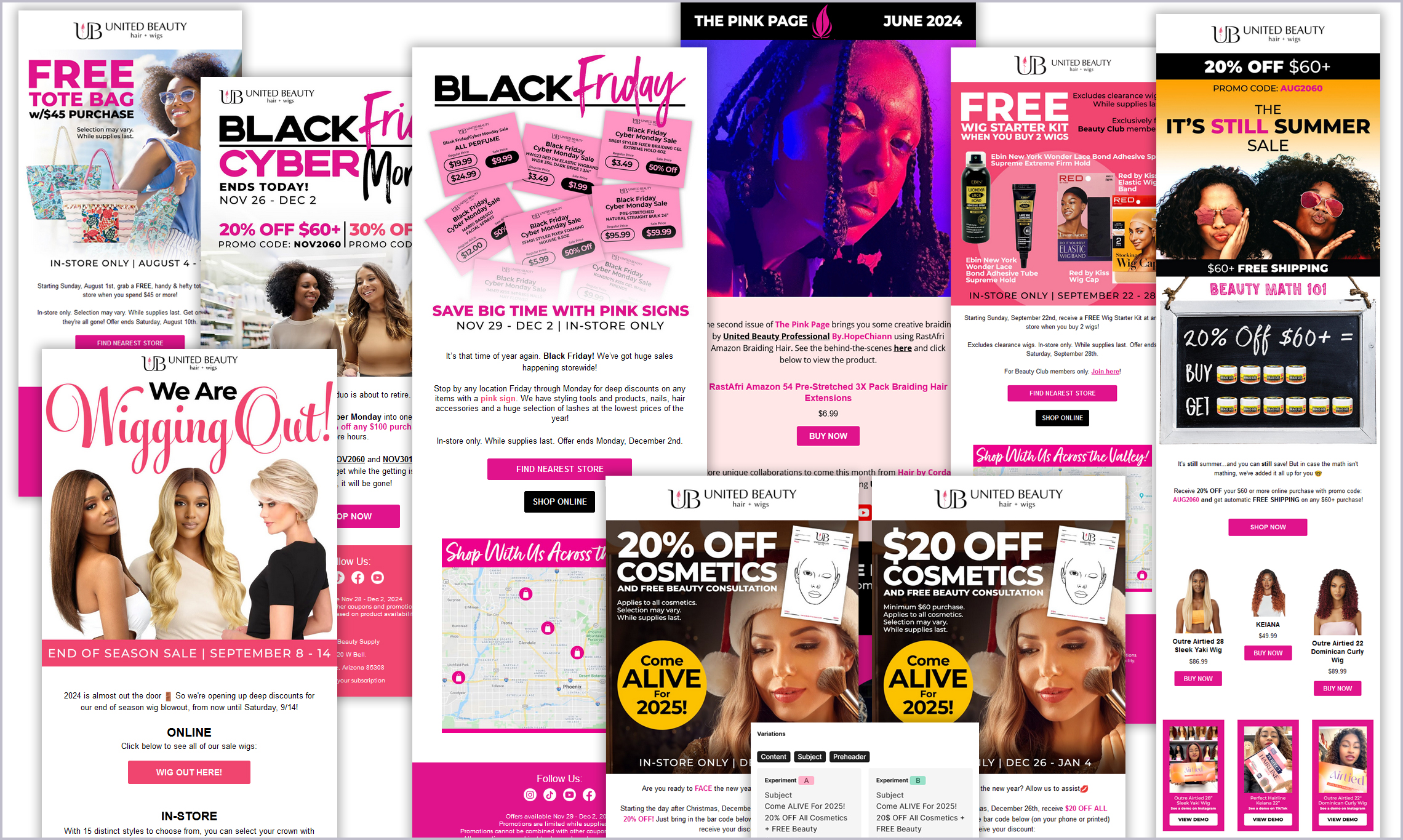 The change of hands allowed me the prime opportunity to update Sendlane templates, creating multiple variations with less reliance on AI generated images and instituting greater brand consistency. In addition to providing email design, copywriting and general management, I introduced A/B testing and multi-faceted campaigns that include social media and website components.