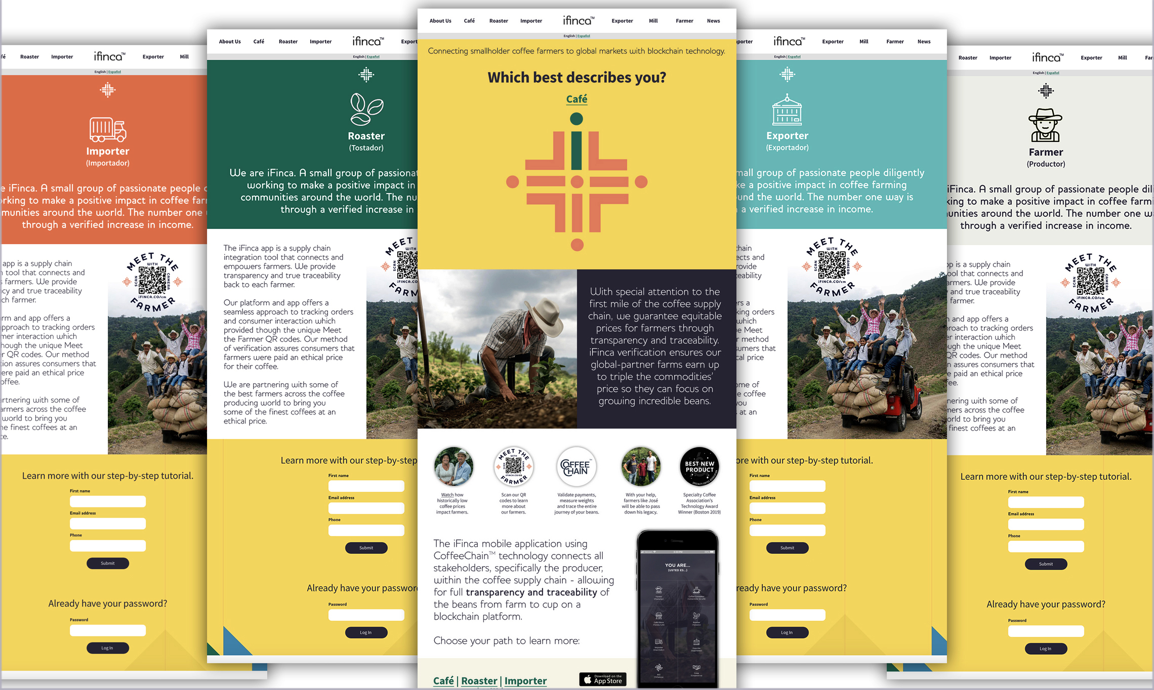 For a site update, iFinca needed something new. Not just a new user experience to ramp up lead generation, but a new approach. So, to communicate their vision for revolutionizing the B2B coffee supply chain, I proposed incorporating the "compass" icon from their brand identity to point things in the right direction. In short, the InVision presentation I provided, with an explanation of the proposed animated/interactive compass tool on the new homepage, bridged the gap between idea and execution and paved the way to development, much to the satisfaction of its owner.