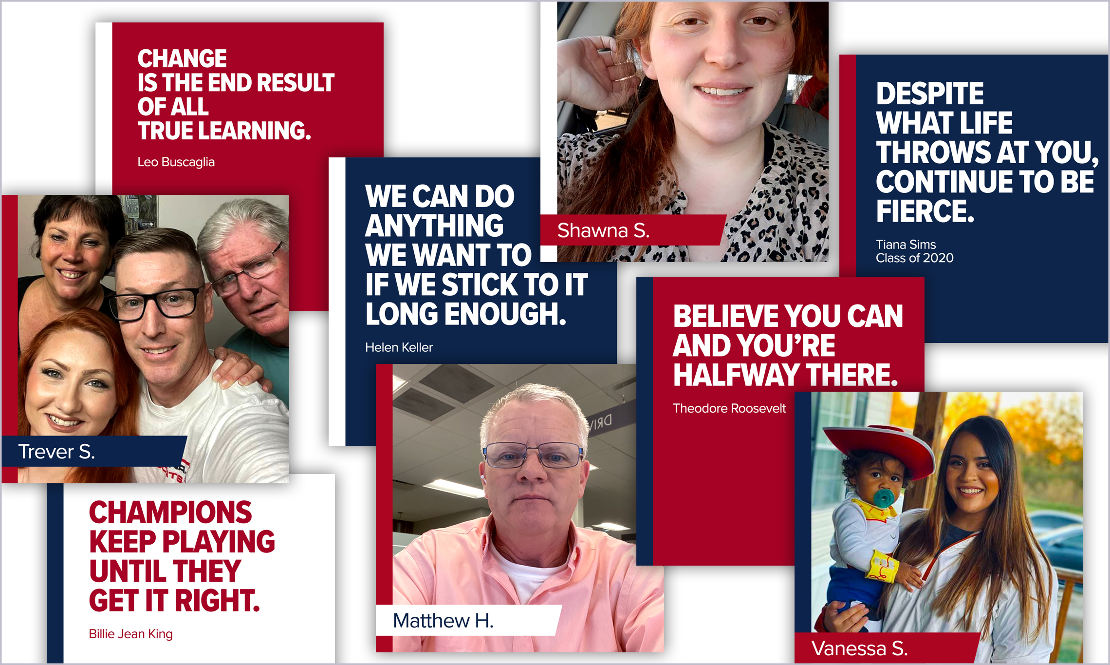 Zovio's new education technology client, University of Arizona, had recently launched an online presence, UAGC (University of Arizona Global Campus). In applying the new brand to marketing, its Instagram presence required my assistance. My approach was to give each post a strong sense of individuality but treat them as puzzle pieces within a more cohesive and fully-branded feed.